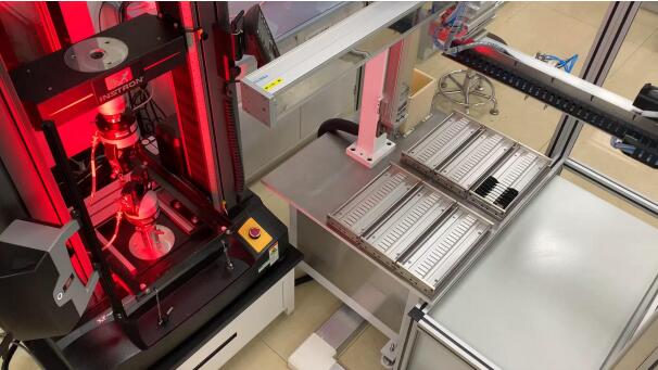 該系統(tǒng)可實(shí)現(xiàn)全自動(dòng)化材料試驗(yàn)過(guò)程,包括樣件抓取、尺寸測(cè)量、材料測(cè)試、廢樣收集、試驗(yàn)報(bào)告生成等,系統(tǒng)兼容INSTRON,MTS,島津等主流品牌的萬(wàn)能材料試驗(yàn)機(jī),采用創(chuàng)新性三軸機(jī)械臂或機(jī)器人設(shè)計(jì),結(jié)構(gòu)緊湊,占地面積小,可保證大批量和高精度的重復(fù)性測(cè)試,樣品存儲(chǔ)數(shù)量可擴(kuò)展至300個(gè),適用于硬質(zhì)塑料、彈性體、薄膜,泡棉、金屬薄片、金屬絲等進(jìn)行拉伸、撕裂、彎曲和壓縮等實(shí)驗(yàn)的全自動(dòng)化。